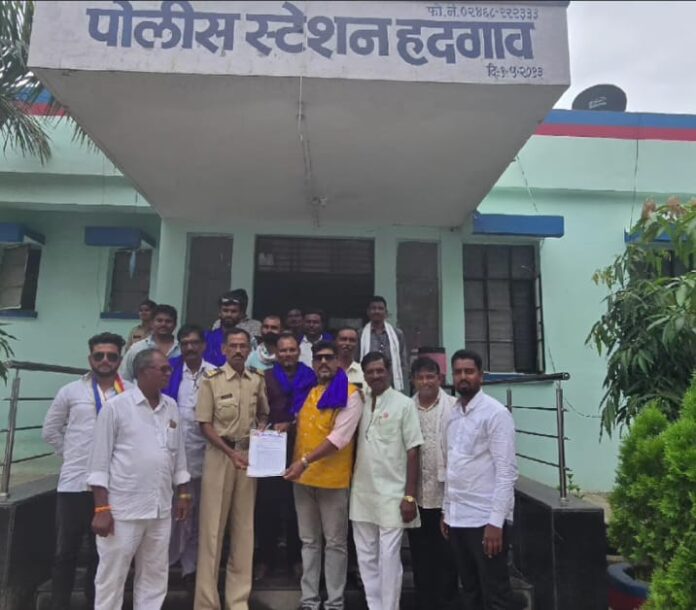 भिम टायगर सेनेचे राष्ट्रीय अध्यक्ष दादासाहेब शेळके यांनी पोलीस स्टेशन हदगाव (जि.नांदेड) येथे मिलींद एकबोटे व त्यांच्या सहकार्यावर देशद्रोहाचा गुन्हा दखला करण्याची मागणी केली आहे. त्यांनी सदर वेळी दिलेल्या निवेदनात म्हटले आहे की, भारत देशामध्ये डॉ. बाबासाहेब आंबेडकर लिखित संविधानाची अमलबजावणी 26 जानेवारी 1950 पासुन झाली आहे. आपले संविधान देशातील प्रत्येक धर्म, जातीच्या मानसांना हक्क व संरक्षण, अभिव्यक्ती, अधिकार इत्यादी देते. आज रोजी संविधानास 75 वर्षे झाले, असुन आजही आपल्या देशातील जवळपास 10 धर्म 7500 जाती शेकडा प्रथा परंपरा, भाषा, प्रांत,यांना एकसंघ जोडण्याचे काम आपल्या भारतीय संविधानाने केलेले आहे. असे चित्र जगाच्या पाठीवर कुठेही दिसत नाही. पण काही अर्बन मनुवादी विचारांचे लोक या देशात मनुस्मृती लागु करण्यासाठी भारतीय संविधानास बदनाम करण्यासाठी गोबेल्स नितीचा वापर करत आहेत त्याचाच भाग म्हणुन अँड. शिवाजी कोकणे शिवाजी नगर पुणे. लिखित संविधान का बदलावे हे पुस्तक त्यांनी भारतीय संविधाना बद्दल गैरसमज व संविधानाची बदनामी व मनुस्मृतीच महत्व वाढविण्यासाठी लिहीले आहे. अँड. शिवाजी कोकणे यांच्या संविधान विरोधी कृत्याला प्रोत्साहन म्हणुन मिलींद एकबोटे (कार्याध्यक्ष समस्त हिंदु आघाडी) सचिनदादा पाटील ( व्यवस्थापक युटुबर प्रसिद्ध लेखक व व्याख्याता), श्री. बाळासाहेब जमादार माळवदकर जयस्तंब कोरेगाव भिमा) बालचंद्र कुलकर्णी “मासिक) संजय विठ्ठल जढर (संपादक “आम्ही सारे (ब्राम्हण (पुणे जिल्हा प्रमुख) श्री. शिवप्रतिष्ठाण हिंदुस्थान, श्री. पराशर मोने- (श्री.शिवप्रतिष्ठान हिंदुस्थान व्याख्याते पुणे.) अॅड. रोषन माळवदकर (सुप्रसिद्ध लेखक) व सौ.सविता कुरुंदवाडे- (सुप्रसिद्ध लेखिका) वरील सर्व आरोपी संविधान का बदलावे या पुस्तकाचा आधार घेवुन संविधानास बदनाम करण्याचा प्रयत्न करीत आहेत. वरील पुस्तकावर तात्काळ बंदी घालुन वरील सर्व आरोपीवर देशद्रोह व संविधान अपमान अधिनियम नियमानुसार गुन्हा दाखल करण्यात यावा. अन्यथा भिम टायगर सेनेच्या वतीने तिव्र आंदोलन करण्यात येईल. असा इशारा निवेदनातून करण्यात आला आहे. सदर निवेदनावर दादासाहेब शेळके,राष्ट्रपाल सावतकर,विशाल भालेराव ,रवी वाघमारे यांच्या स्वाक्षरी आहेत.